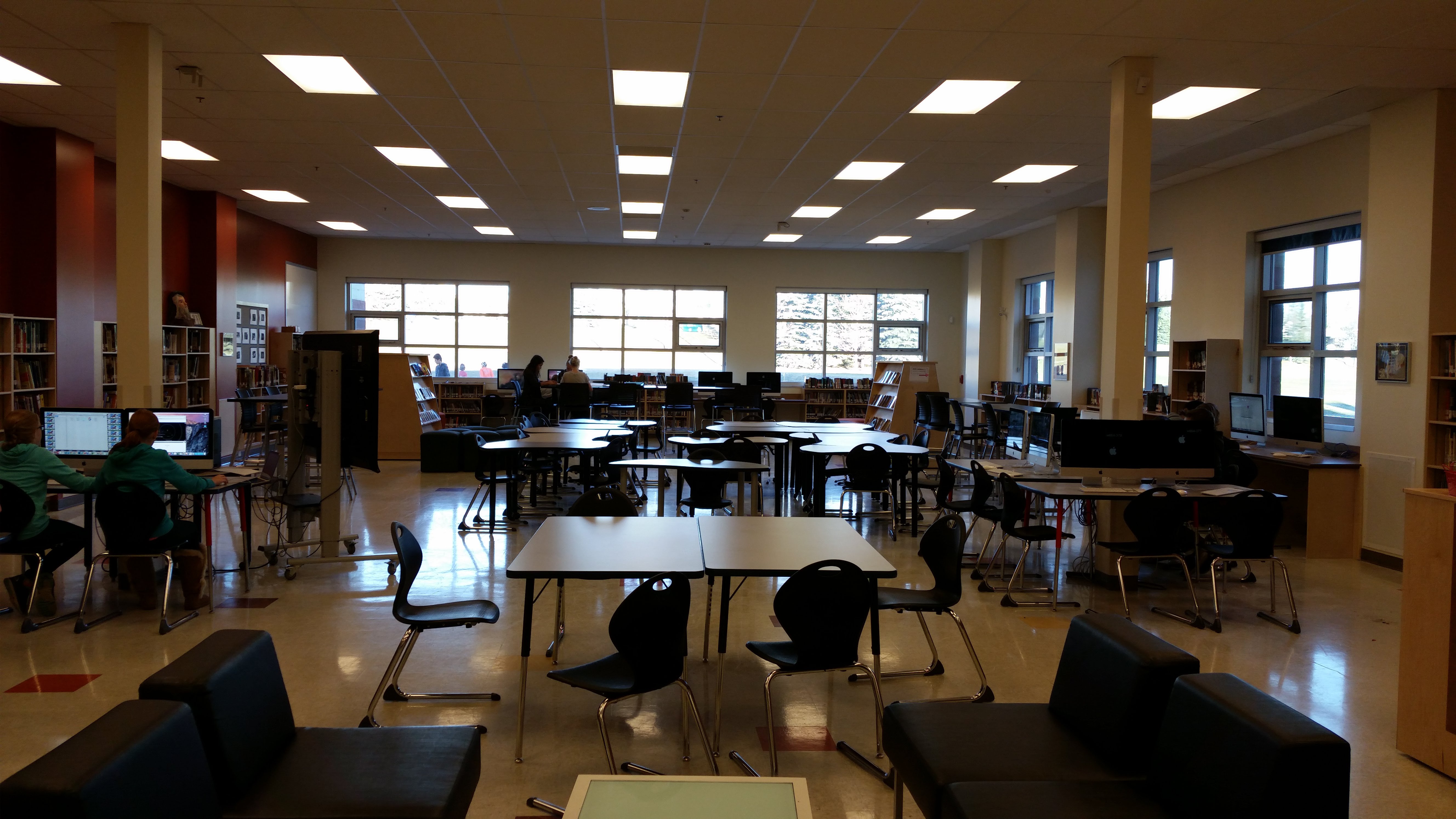 At our school, we are committed to making sure that our students have access to the resources they need to support learning when they need them, whether it is a book or periodical, a computer, iPad or camera or “maker supplies” or access to our art cart.  To action this commitment, our Learning Commons is staffed all day (including nutrition break and lunchtime). Students are able to sign out the resources that they need and there is always someone to answer their questions.